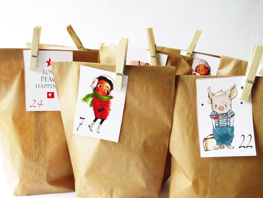 Adventskalender Tüten zum Befüllen für Mädchen /Zahlen-Stickern