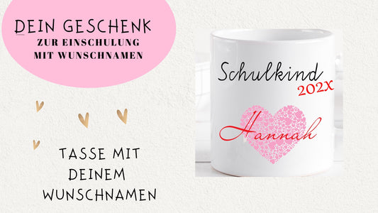 Schulkind 2025 - Geschenk Tasse Einschulung personalisiert für Mädchen - Namenstasse mit Wunschnamen