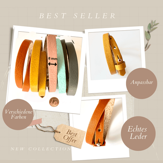 Finde ausgefallene personalisierte Armbänder für Frauen als Freundschaftsarmbänder. Lederarmbänder mit Schiebeperlen als Wickelarmband oder Bettelarmbänder mit individuellen Anhängern.