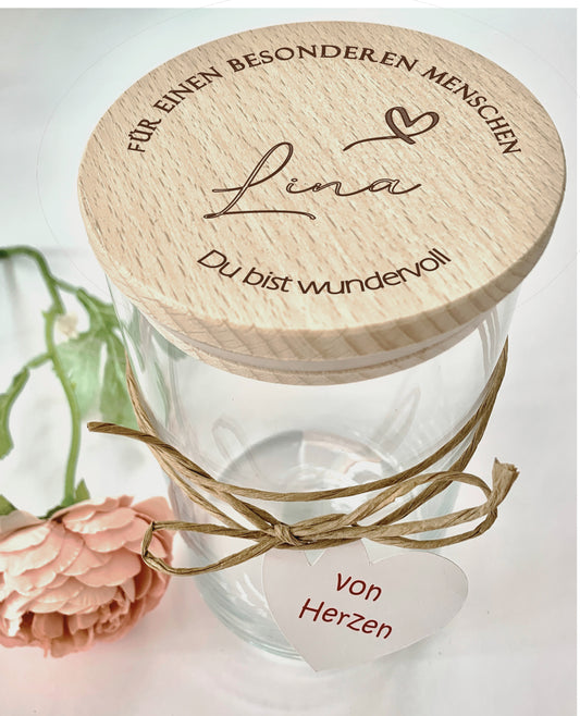 Dankeschön Geschenke Vorratsglas mit Namen graviert