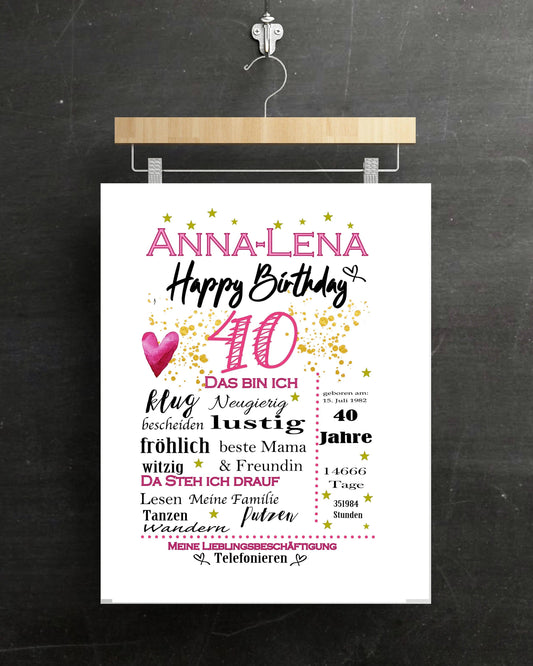 40 Geburtstag Frau Geschenk Bild - Geschenkidee mit Namen personalisiert