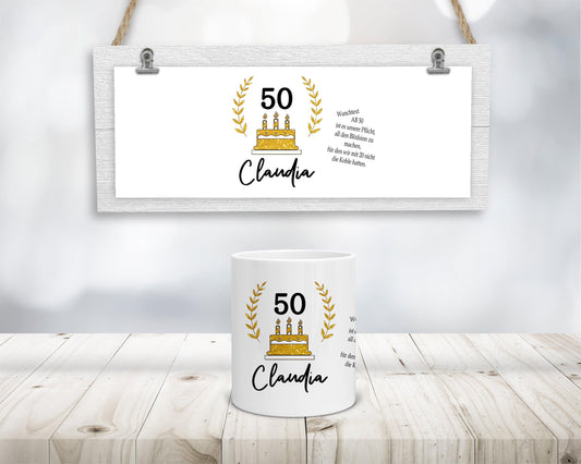 50 Geburtstag Frau Geschenk Tasse - Geburtstagsgeschenk mit Namen personalisiert