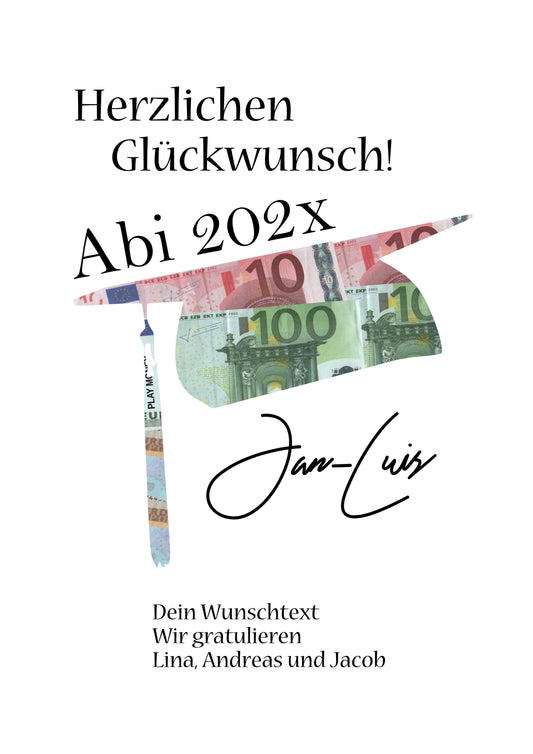 Geldgeschenk Abitur/Abi Jungen Mädchen 2024 - Bild personalisiert mit Namen und Wunschtext