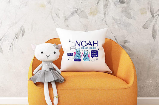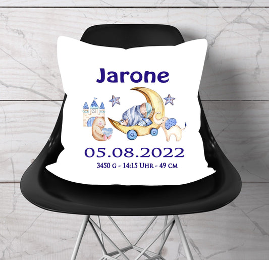 Baby Geschenk Junge mit Geburtsdaten personalisiert - Namenskissen-Bezug Junge