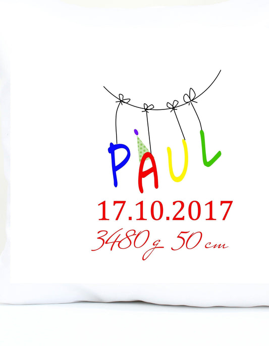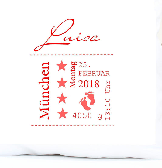 Geschenk Geburt individualisiert für Junge - Namenskissen-Bezug mit Geburtsdaten