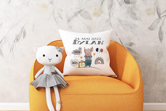Namenskissen Baby Mädchen / Kissen mit Namen / Geschenk Geburt / mit Tiermotiv
