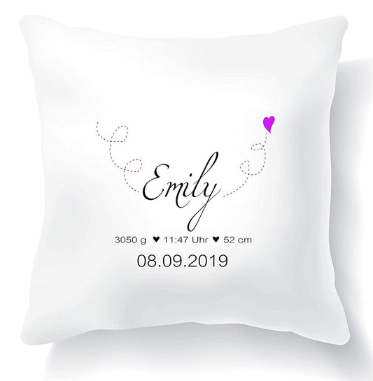 Babygeschenke zur Geburt Mädchen mit Geburtsdaten personalisiert - Namenskissen