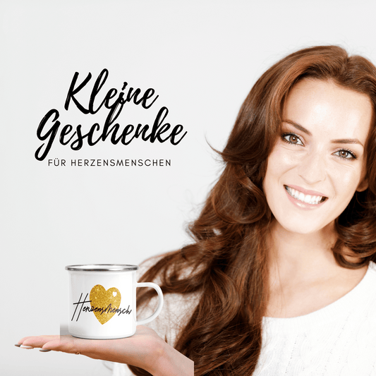 Geschenk Lieblingsmensch - Beste Freundin / Emaille-Tasse Kaffee- Becher mit Herz für Lieblingsmensch Herzensmensch