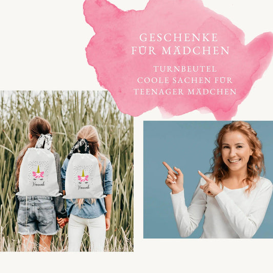 Geschenke für Mädchen, Einhorn Geschenke für Mädchen gesucht? Personalisiere dein Turnbeutel als coole Sachen für Teenager Mädchen, Gym Bag mit Einhorn als Mädchen Geschenke 6 – 12 Jahre