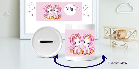 Einhorn Geschenke Mädchen personalisiert mit Name - rosa Sparbüchse