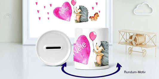 Geschenke Mädchen - SPARDOSE Igel mit Namen personalisiert