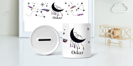 Was unsere Spardosen besonders macht? Du kannst sie individuell gestalten! Ob mit dem Namen des Kindes, einem Geburtsdatum oder einem besonderen Motiv – jede Spardose wird zu einem einzigartigen Andenken, das die Kindheit in liebevoller Erinnerung hält.