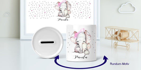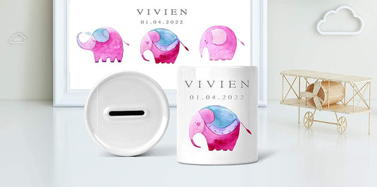 Geschenk Geburt - Baby-Spardose mit Elefant Tier-Motiv
