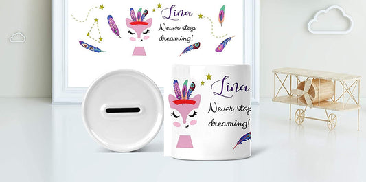 - Personalisierbar: Verleihe jeder Spardose eine persönliche Note mit dem Namen des Kindes oder einem Datum – für ein Geschenk, das ganz individuell auf den kleinen Sparer abgestimmt ist.