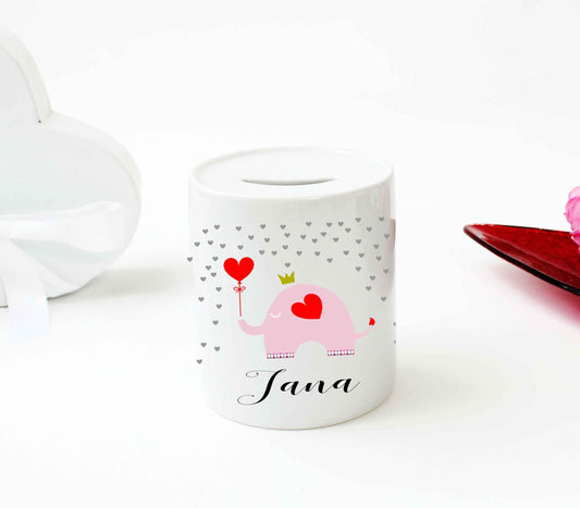 Spardose für Kinder Mädchen mit Namen personalisiert - Taufgeschenk