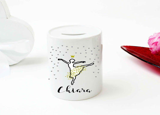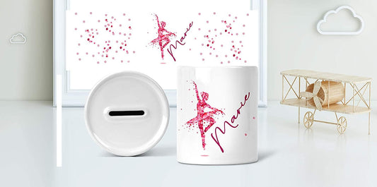 Spardose Mädchen Ballerina personalisiert mit Name - Sparbüchse Sparschwein - Geschenk-Idee Teenager