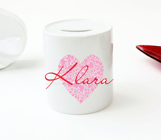 SPARDOSE FÜR MÄDCHEN mit Namen personalisiert - Keramik - Sparbüchse als Geld-Geschenk Geburt Taufe Geburtstag