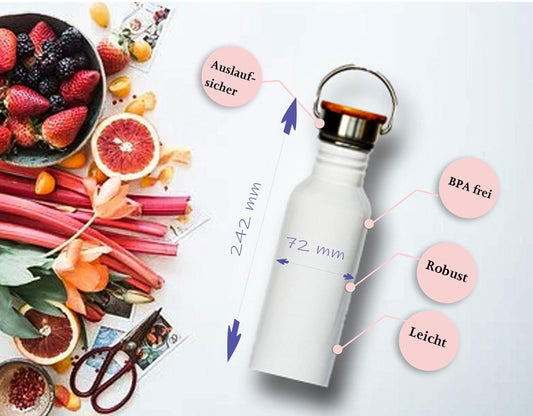 Trinkflasche Wasserflasche Kinder Edelstahlflasche personalisiert Name - Geschenk Mädchen Schule - Getränke Flasche Deckel Bambus Gravur