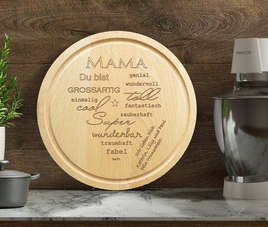 Schneidebrett Holzbrett rund mit Gravur & Namen personalisiert - Holz Küchenbrett - Geschenk für Hobbyköche